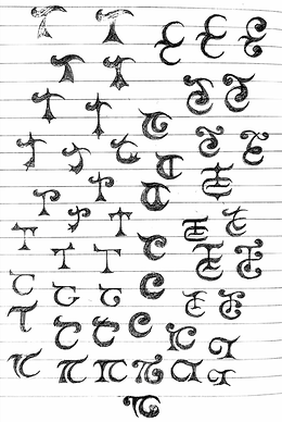 Plusieurs inspirations ont influencé mon travail : d'une part l'écriture onciale (médiévale) car j'apprécie cette période, et d'autre part les années 60/70 pour la liberté et la souplesse des formes.